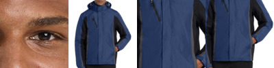 An attached hood and bold colorblocking give this well-priced, wind-resistant, water-repellent soft shell extra rain-shielding protection and strong style.